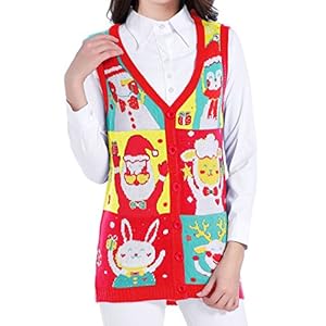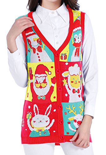 v28-Ugly-Christmas-Sweater-Women-Girl-Vintage-Knit-Xmas-Reindeer-Sweater-Vest-M-LightBlue