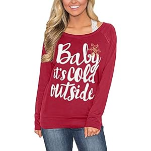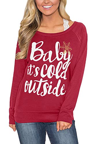 Christmas-Womens-Raglan-Party-Long-Sleeve-Maroon-Shirt-Reindeer-Cotton-Graphic-Sweatshirts-M