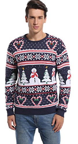 daisysboutique-Mens-Christmas-Holiday-Snowman-Sweater-Cute-Ugly-Pullover-Small-Love-Canes