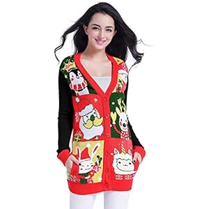 v28-Christmas-Sweater-Cardigan-Ugly-Women-Knit-White-Red-Santa-Xmas-Sweater