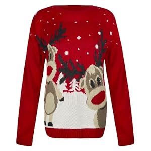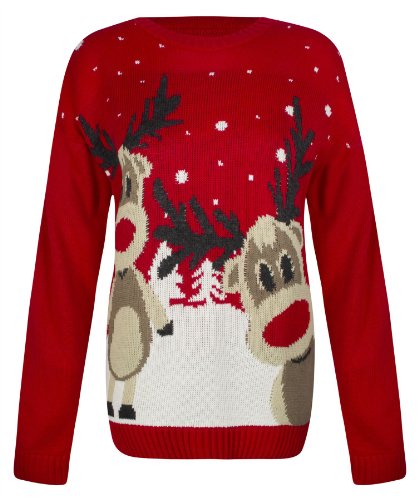 Womens-Knitted-Christmas-Novelty-Santa-Reindeer-Penguin-Snowman-Jumper-Sweater-SM-UK-810-Red-Big-Reindeers-In-Snow