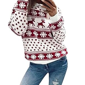 Christmas-SweatshirtHan-Shi-Women-Xmas-Snowflakes-Print-Tops-Long-Sleeve-Blouse-Hoodie-Red-L
