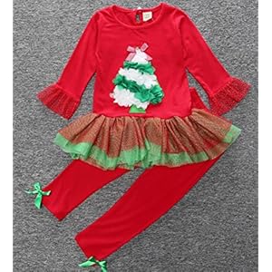 Baby-Girls-Christmas-Tree-Long-Sleeve-Shirt-Pants-Skirt-Suit-2PCS-Outfits-Set