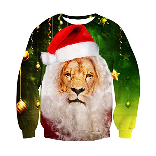 Leapparel-Ladies-3D-Animal-lion-Ugly-Christmas-Sweater-elf-Printed-Novelty-Travel-Long-Sleeve-T-shirt-Top-Shirts-Green