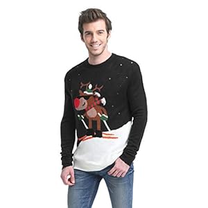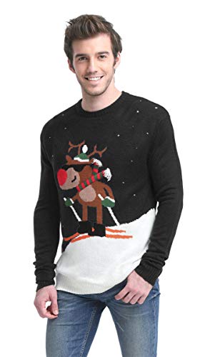 Daisyboutique-Mens-Christmas-Reindeer-Sweater-Cute-Ugly-Pullover-X-Large-Skiing-Black