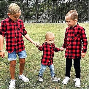 Mini-honey-Kids-Little-Boys-Girls-Baby-Long-Sleeve-Button-Down-Red-Plaid-Flannel-Shirt-Plaid-Girl-Boy-NB-4T