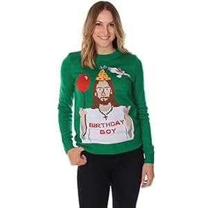 Tipsy-Elves-Womens-Ugly-Christmas-Sweater-Happy-Birthday-Jesus-Sweater-Green-Size-XXL