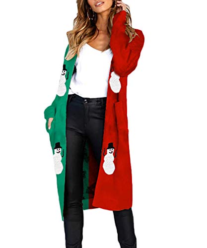 FAFOFA-Womens-Cardigan-Sweater-Christmas-Snowman-Print-Long-Sleeve-Open-Front-Knit-Midi-Sweater-Coat-Outwear-Green-S