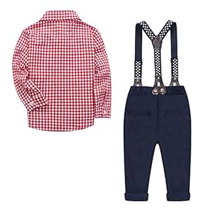 Baby-Boys-2-Pieces-Tuxedo-Outfit-Long-Sleeves-Plaids-Button-Down-Dress-Shirt-with-Bow-Tie-Suspender-Pants-Set-Suit-for-Infant-Newborn-Toddlers-Red-for-2-3-Years-Tag-Size-110
