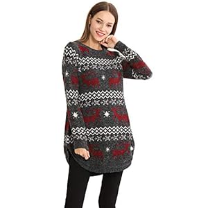 Shineflow-Womens-Reindeer-Snowflake-Midi-Christmas-Pullover-Sweater-Jumper-S-Black