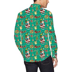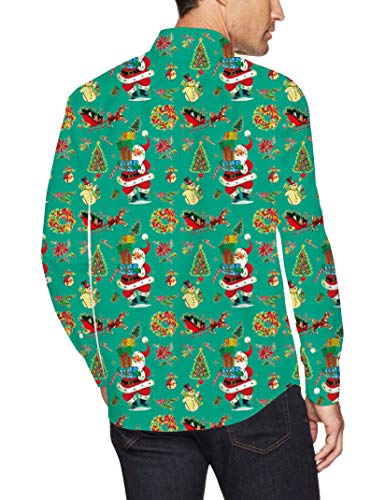 RAISEVERN-Mens-Button-Down-Dress-Christmas-Santa-Cariiage-Gift-Printed-Green-Long-Sleeve-Shirts