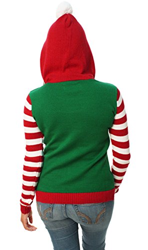 Ugly-Christmas-Sweater-Womens-Cute-Santa-Girl-Hooded-Sweater-Large-Emerald
