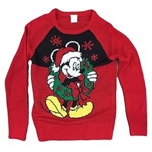 Disney Mickey Mouse with Christmas Wreath Women’s Junior’s Sweater (Large 11-13) Red