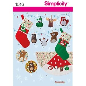 • SIMPLICITY 1516 CHRISTMAS FELT ORNAMENT, STOCKING, TREE SKIRT, WALL HANGING ~ SEWING PATTERN